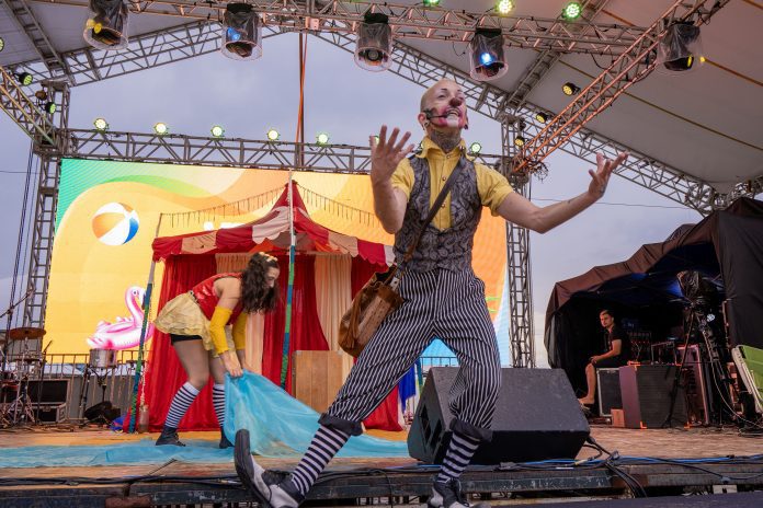 Começou nesta quarta-feira (22), na Praia Brava de Caiobá, em Matinhos, o espetáculo itinerante “A Fonte Mágica”, que nos próximos dias percorrerá outros balneários do Litoral do Estado. A apresentação ocorreu no Palco Sunset, dentro da Arena do Verão Maior Paraná, e misturou elementos do teatro e do circo para estimular o público a pensar sobre o uso consciente dos recursos hídricos.